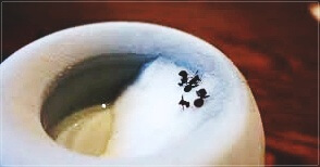 그리고 드디어, 메인 요리 전에 나온 클렌저 셔벗에 개미가 올라갔어요. 직원분이 “설악산에서 직접 채집한 개미입니다”라고 조심스레 설명해 주는데, 눈앞에 작은 검은 점이 보이자 순간 움찔했답니다.