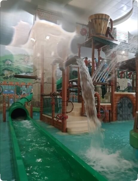 워터파크는 실내외 다양한 놀이시설과 안전 관리를 자랑합니다.